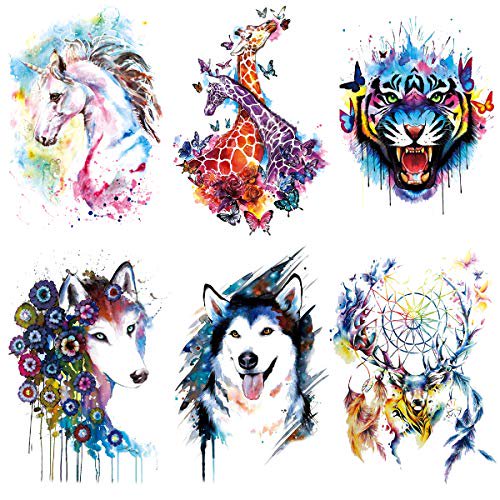 6 Sheets Padoun Unicorn Geometric Tiger Wolf Waterproof Temporary Tattoos Sleeve Stickers Fake Tattoos Body Tattoo Stickers For Men Women Girls Boys Walmart Com