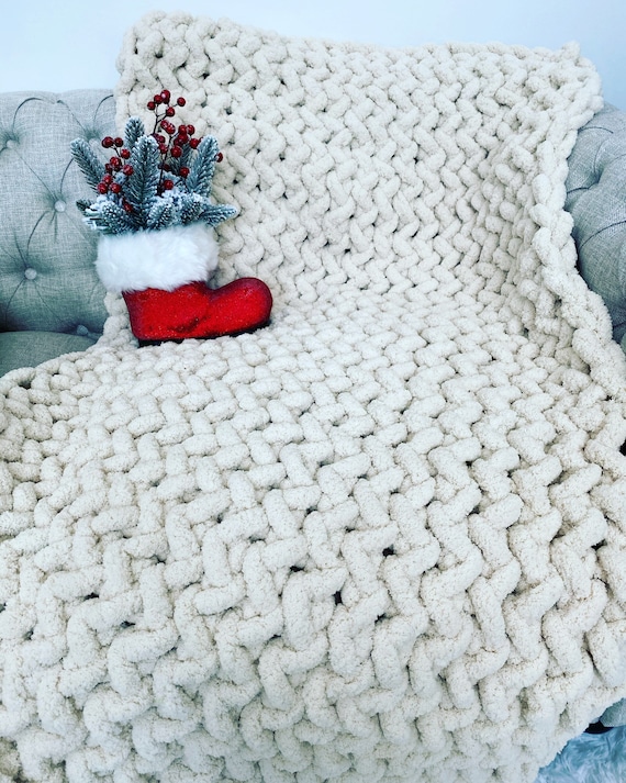 Chunky Knit Blanket Free Shipping Twisted Stitch Chunky Etsy Uk